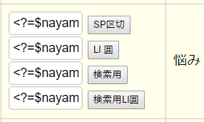 | 35 | user_tag_haritsuke_p | 自動_php_検索エリア 自動_php_検索索引JS 自動_php_ソートボタン 自動_html_検索エリア 自動_html_検索索引JS 自動_php_検索エリア(1ページに2ヶ目) | 6 | 貼付け用自動作成分 |